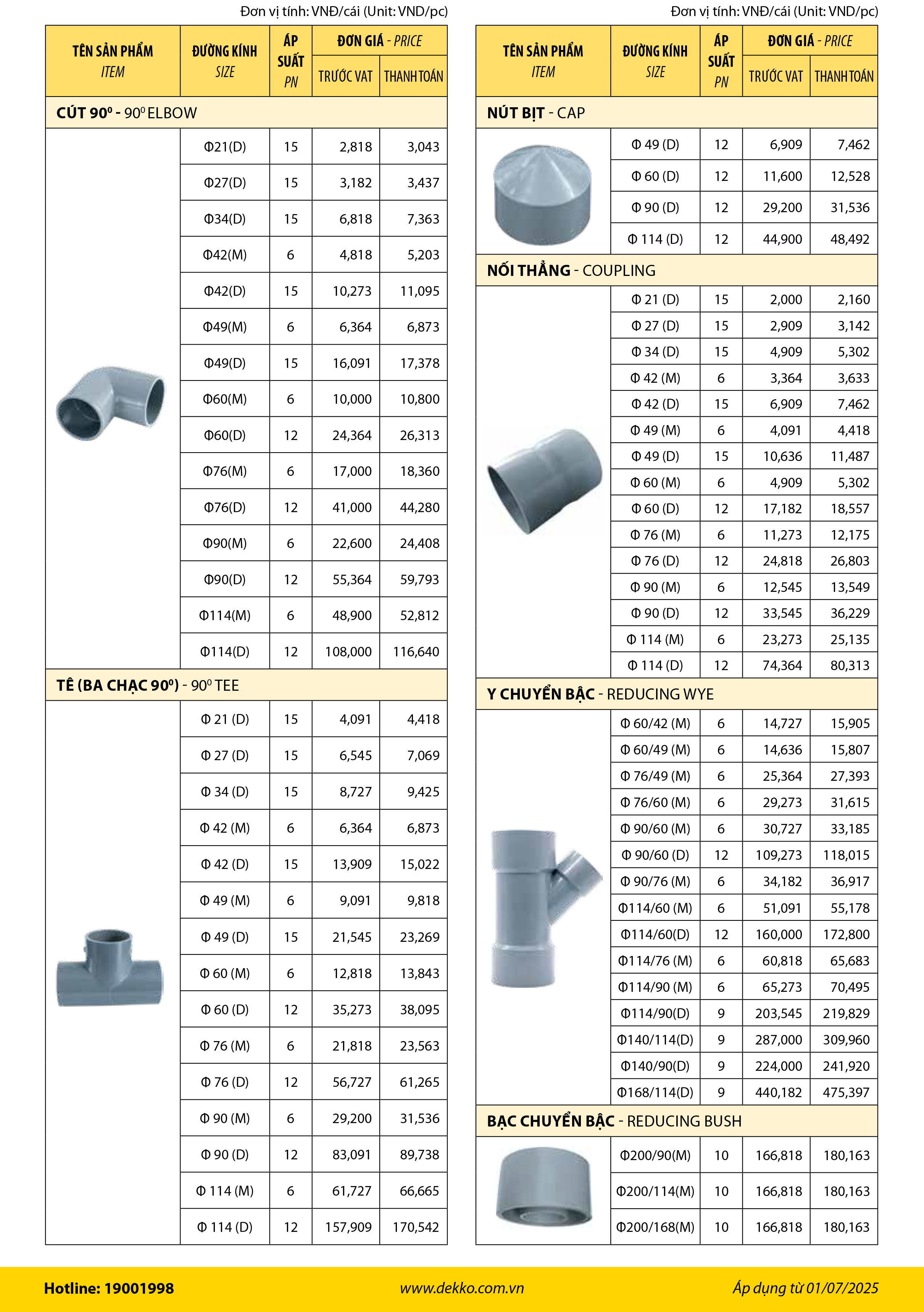 - Đường kính DN: 21mm – 114mm.